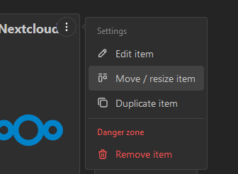 As soon as you save your changes, the tile on the board will refresh and display your app. Using the small bidirectional arrow at the bottom right you can resize the element. Start pressing with your mouse button down, move your mouse to resize and release your finger as soon your you're happy with the size.
