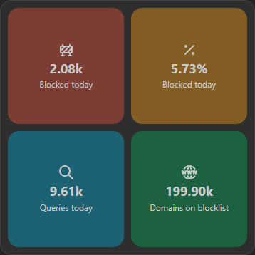 This widget allows you to display statistics about your DNS Hole like total queries, blocked queries, and more.